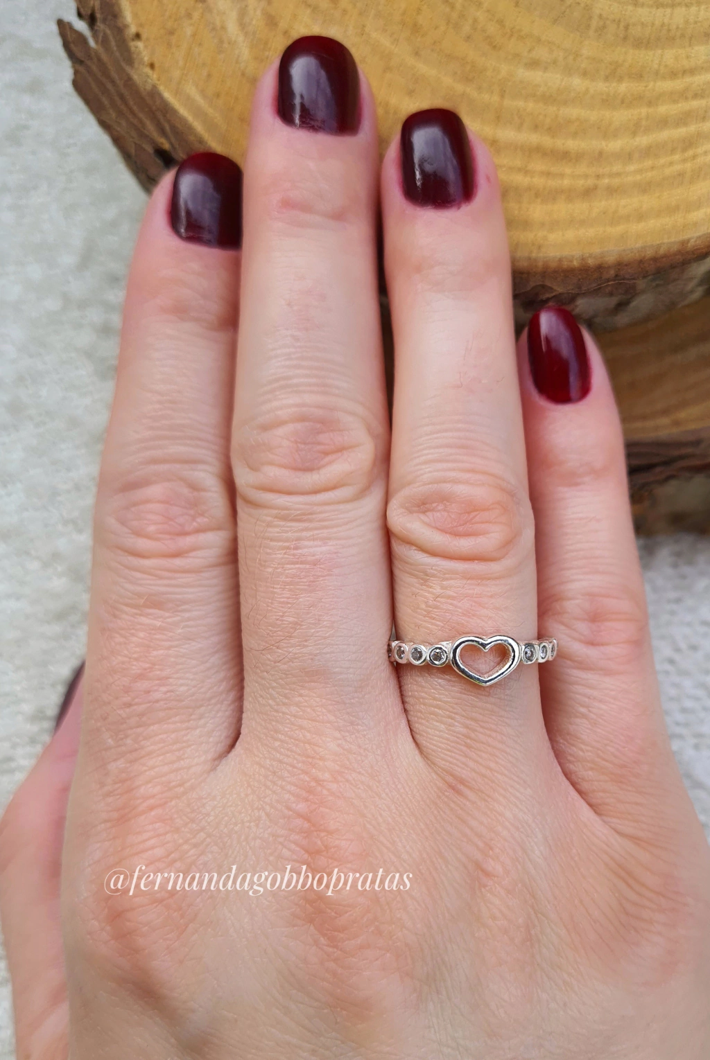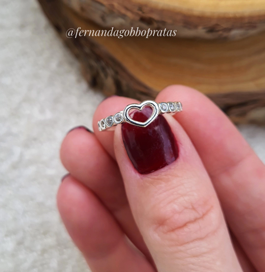 AAnel com Coração Vazado 7mm com 8 Zircônias Laterais 4 de cada lado com 2mm. Selecionar o Aro.