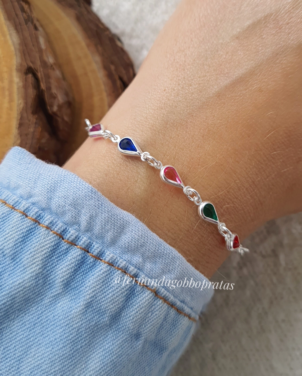 Pulseira 18cm com 5 gotas coloridas de 5mm cada.